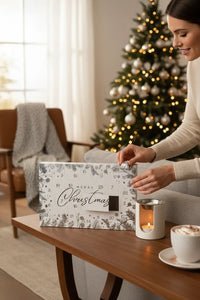 El diseño minimalista y elegante, con tonos plateados, convierte este calendario de adviento en un detalle perfecto para regalar o para disfrutar tú misma como un ritual de autocuidado navideño.